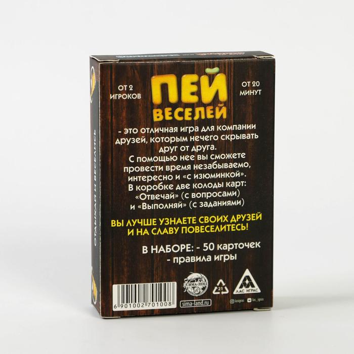 Купить игра для компании "пей веселей" 50 карт от 180 руб. с доставкой до пункта выдачи в Балее. Интернет магазин ДекаМаркет. Оплата при получении.